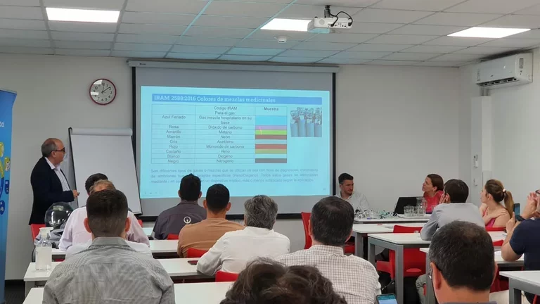 Durante el primer módulo teórico, que tuvo lugar en el Aula Austral (Centro de Capacitación de Veolia) se focalizó en la normativa asociada a los gases medicinales y a los productos médicos de uso hospitalario, y se brindó información sobre las redes de instalaciones hospitalarias y los equipos asociados al uso de oxígeno medicinal.