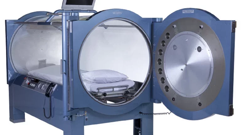 - Disponible en tres espaciosos diámetros interiores – 83 cm (33”), 90 cm (36”) y 104 cm (41”). Todas las cámaras hiperbáricas de Sechrist ofrecen la posición de reposo del paciente en posición tumbado o reclinado, lo que facilita la comodidad y la relajación del paciente.